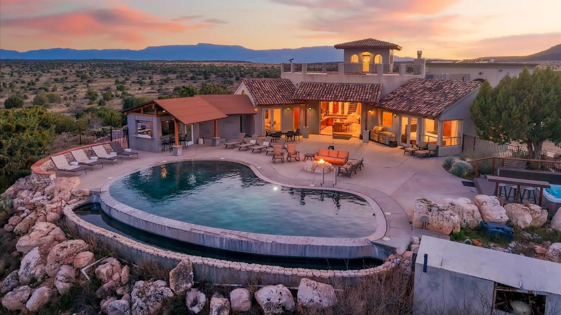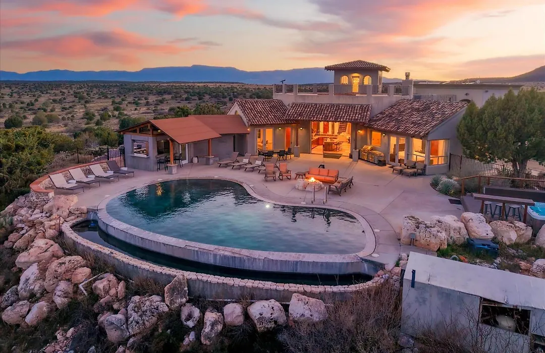 Deze gesitueerde in Sedona The Sanctuary At Sacred Mesa - Panoramic Views Villa Sedona beschikt over een patio op de berg en een privézwembad.
